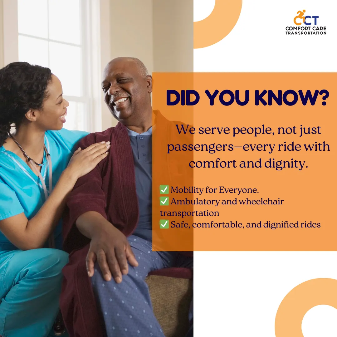 Comfort Care Transportation strives to provide quality and on-time non-emergency medical transportation. Our dependable and patient-centered performance has built a solid reputation.